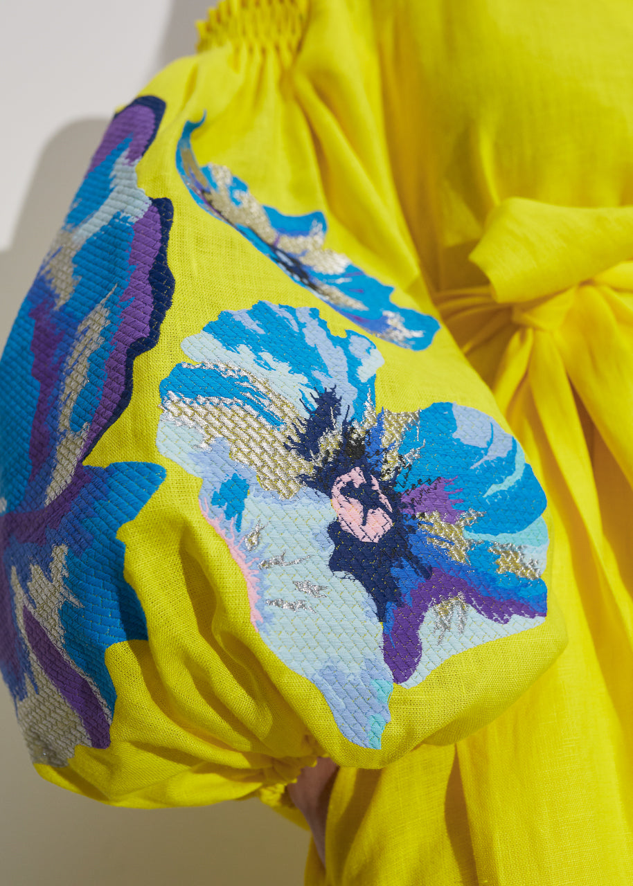 A unique combination of traditions and modernity made to reflect your vibrant personal style. Features sophisticated ethnic 3D embroidery, motifs and silhouettes based on Ukrainian authentic patterns.